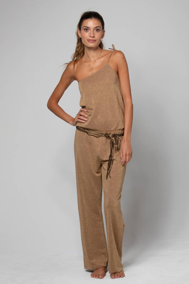 Confectionnée dans un tissu lurex doré scintillant, la combinaison Avalone capte délicatement la lumière et illumine votre bronzage, pour une allure sophistiquée et féminine. Son pantalon fluide allonge visuellement les jambes et apporte un tombé élégant, tout en offrant un confort optimal grâce à sa matière légère et agréable à porter.